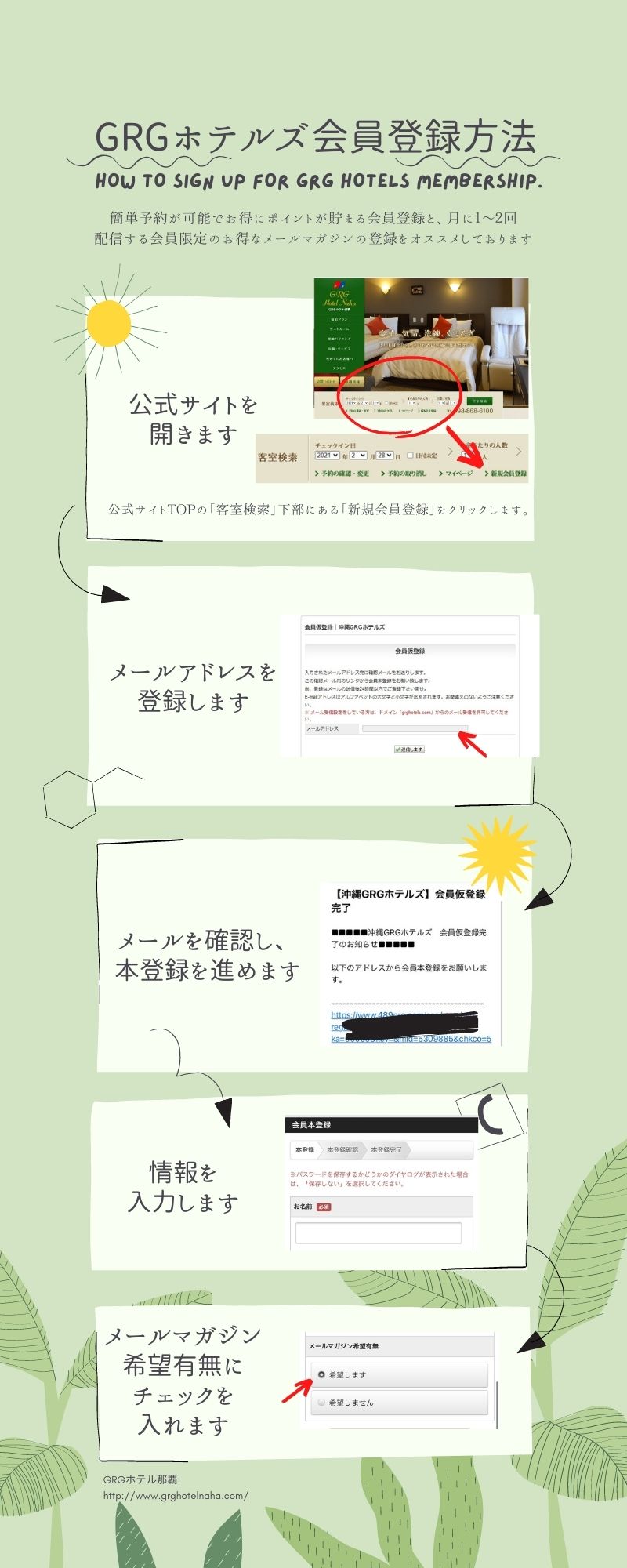 ご予約方法・会員ページの照会等は以前の仕様と変わりございませんが、改めてGRGホテルズ会員のご登録方法とメルマガ設定方法を下記に掲載致しますので、まだご登録頂いていない方はこの機会に是非ご検討下さいませ。